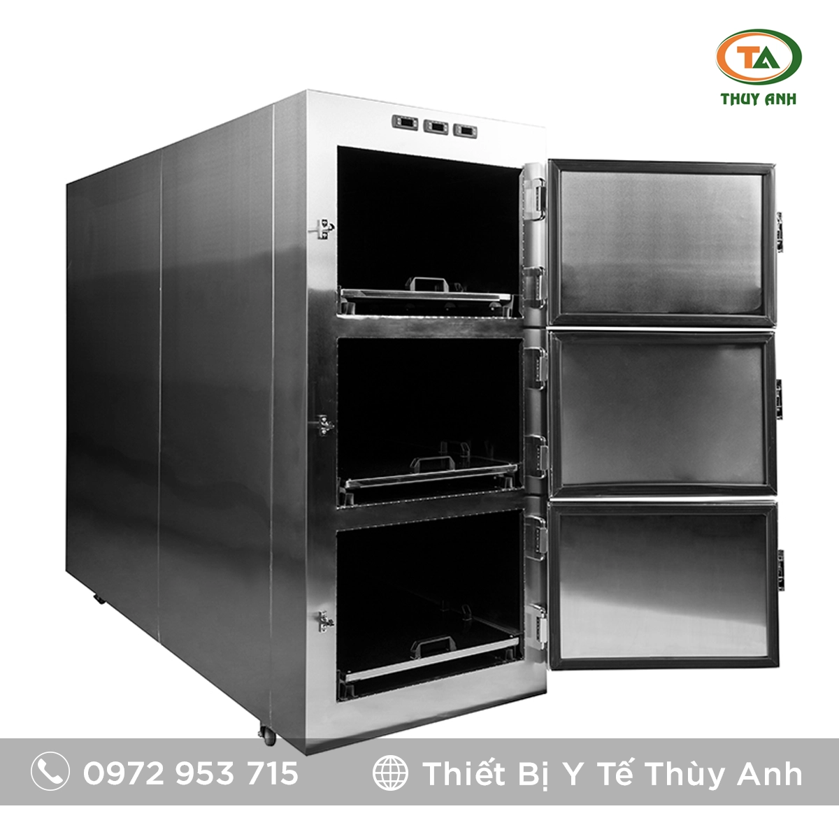 Mỗi buồng của tủ bảo quản tử thi 3 buồng có thể cài đặt nhiệt độ độc lập, giúp linh hoạt trong vận hành và bảo quản. -
